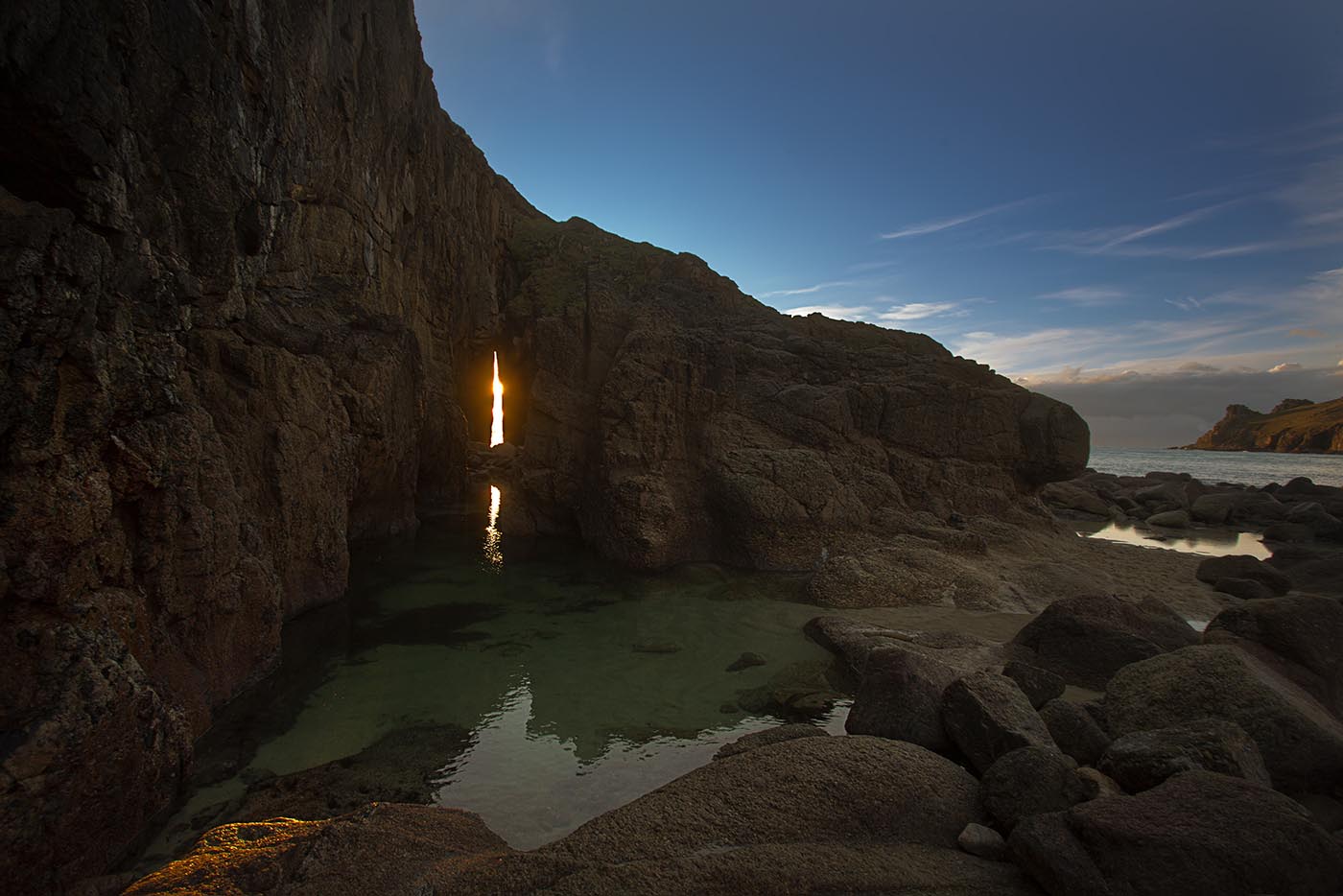 This is the place you reach by following the footpath behind our house, about 15 mins walk. For about 2 weeks, this time of year, the sunset illuminates, but unfortunately doesn't align with, "the Song of the Sea."