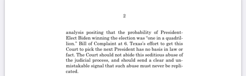 Here is the Supreme Court docket, with filings attached, for this case. Explore the links and read the actual legal arguments - turn off the Trumpist propaganda. Maybe then you’ll understand why even Ohio’s Republican attorney general is on board saying this lawsuit is an insult to democracy.