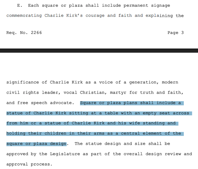 New bill filed into Oklahoma legislature requiring every public university to have a Charlie Kirk memorial.