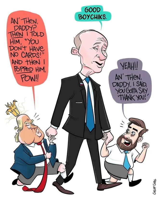 Putin and Xi Jinping must be celebrating that their talking points have been taken up in Washington. Former Russian President Dmitri Medvedev posted on X: “The insolent pig finally got a proper slap down in the Oval Office.” Our democratic friends in Taiwan are now worried they might be next.