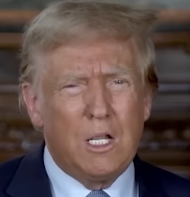 Has anyone else noticed this? I snipped the photos below from a video that Trump recently posted on Truth Central and I viewed on YouTube where he's addressing his "Trump Caucus Captains".