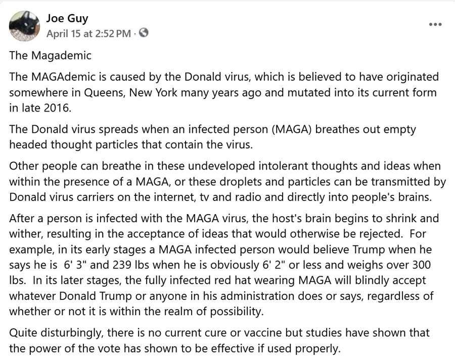 Whoever is driving that truck is displaying symptoms that were quite obviously caused by exposure to the Donald virus, which is the cause of the Magademic...