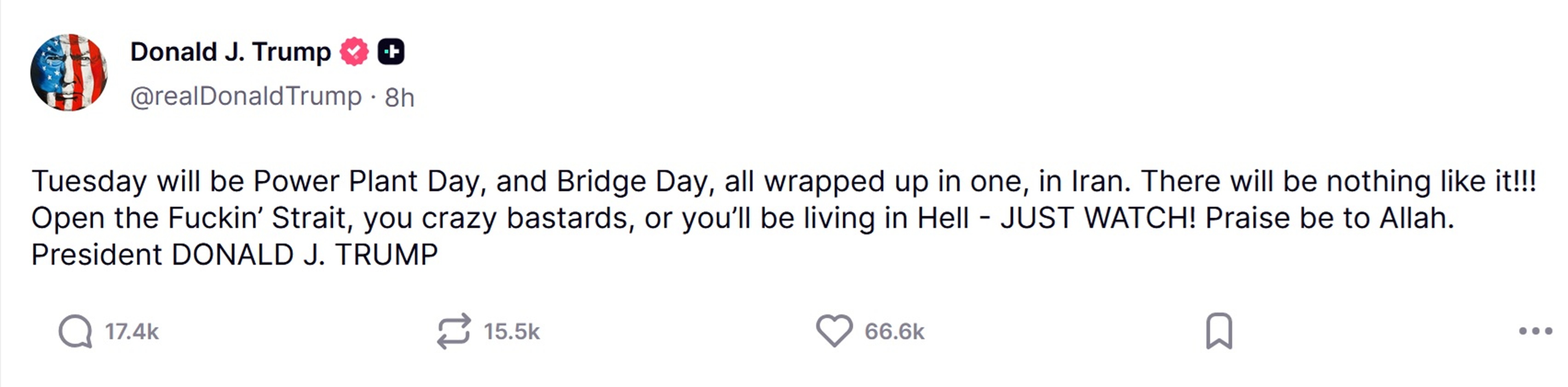 Also, didn't Trump tell us last week he doesn't care if the Strait of Hormuz is open, that it was someone else's problem? Also didn't he tell us he already won the war? And that all the Iranian leadership was dead? And that he was having very good negotiations with the Iranian leadership? And that the war would be over in 3 or 4 weeks? And that it's not a war? And that we are at war so we can't afford Medicare, Medicaid, daycare because we need another $200 billion just for the war?