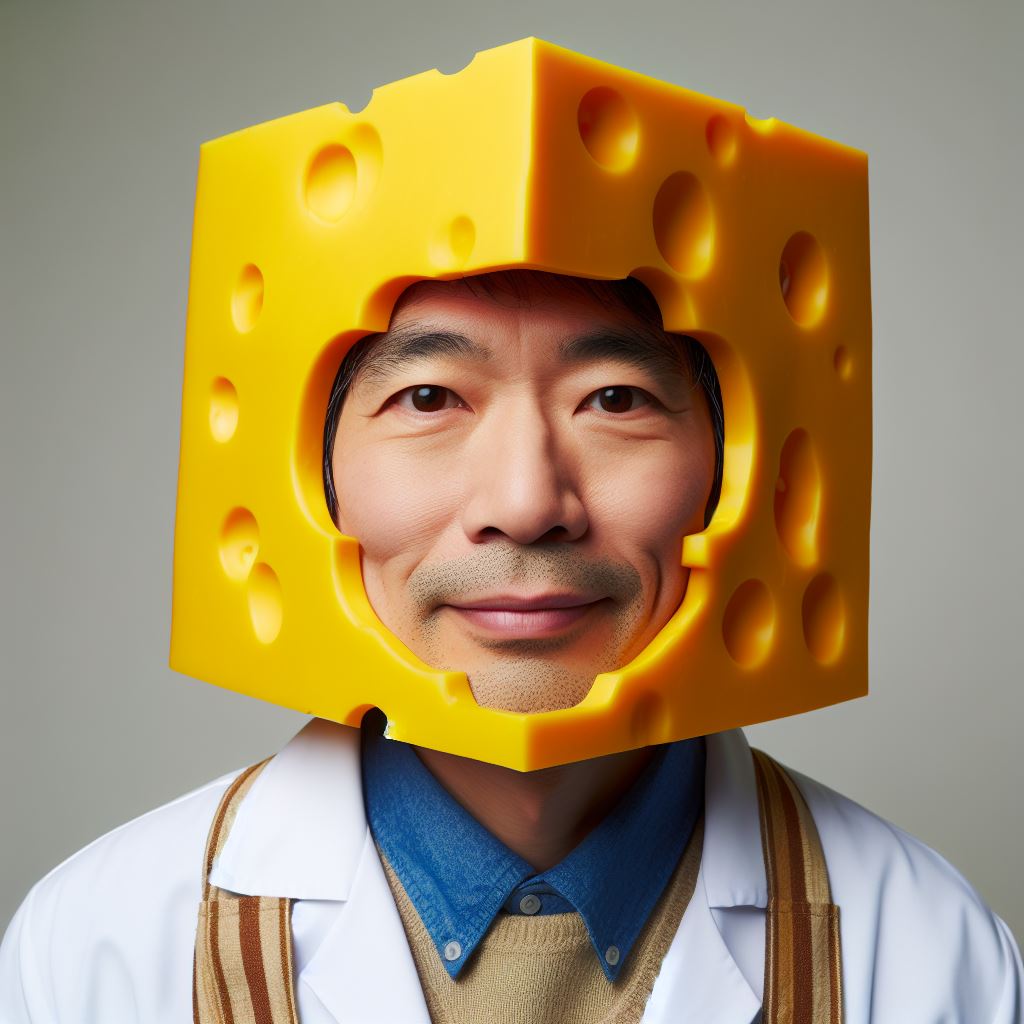 Okay, I used "a Swiss man with a Cheddar headpiece". I also used 'cheddar cheese headpiece' in the request and got similar results. Here's what AI came up with. (by the looks of it, I guess AI thinks all cheese has holes in it)....ex-khobar Andy wrote: ↑Wed Mar 20, 2024 5:34 amReally confuse AI. Ask for a Swiss man with a Cheddar headpiece.