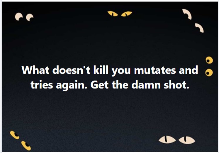 Sometimes I don't understand people; if everyone got the shot, this thing would be over. Vaccination is not a new thing. The idea goes back at least two hundred years. George Washington vaccinated his entire army for smallpox, and he used live vaccines. Some of his soldiers died. Today's vaccines have almost no risk compared to Washington's time, but the same calculation still holds the benefit significantly out weights the risk. Get the damn shot.