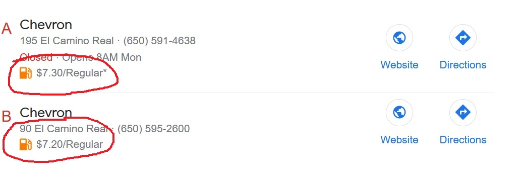 Although Chevron is $7.20/gallon for regular nearby, other brands of gasoline are selling for about $6.59/gallon - still way too much. Once you get away from the San Francisco area the price is closer to $5.50/gallon right now. No matter what, I'd be surprised if I ever see the price drop below $5.00/gallon here.