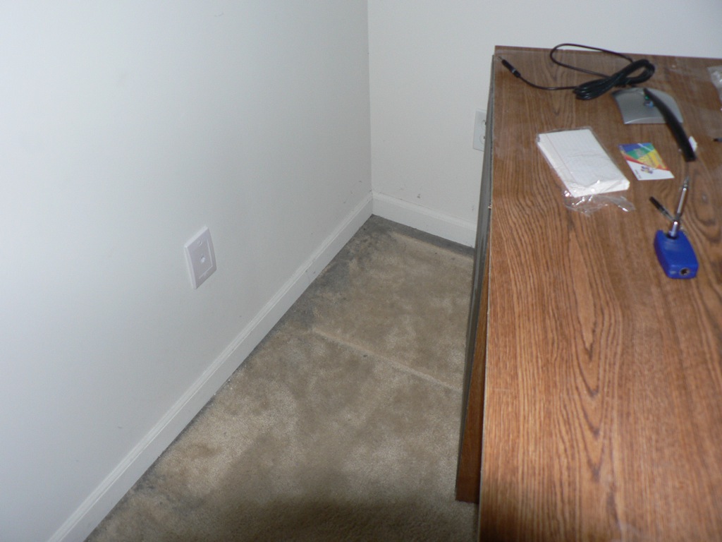 After coat 3 I started to take apart the computer desk in the second bedroom Disassembled the drawers and the hutch while keeping the old computer (G5) operational. THen took off extraneous computer accessories (speakers) and then pulled the desk off the wall. Unscrewed the wall plate for the network took my dads handy drywall saw and poked a hole into the master bedroom. Went to the other side where I measured and cut the hole into low voltage outlet size.