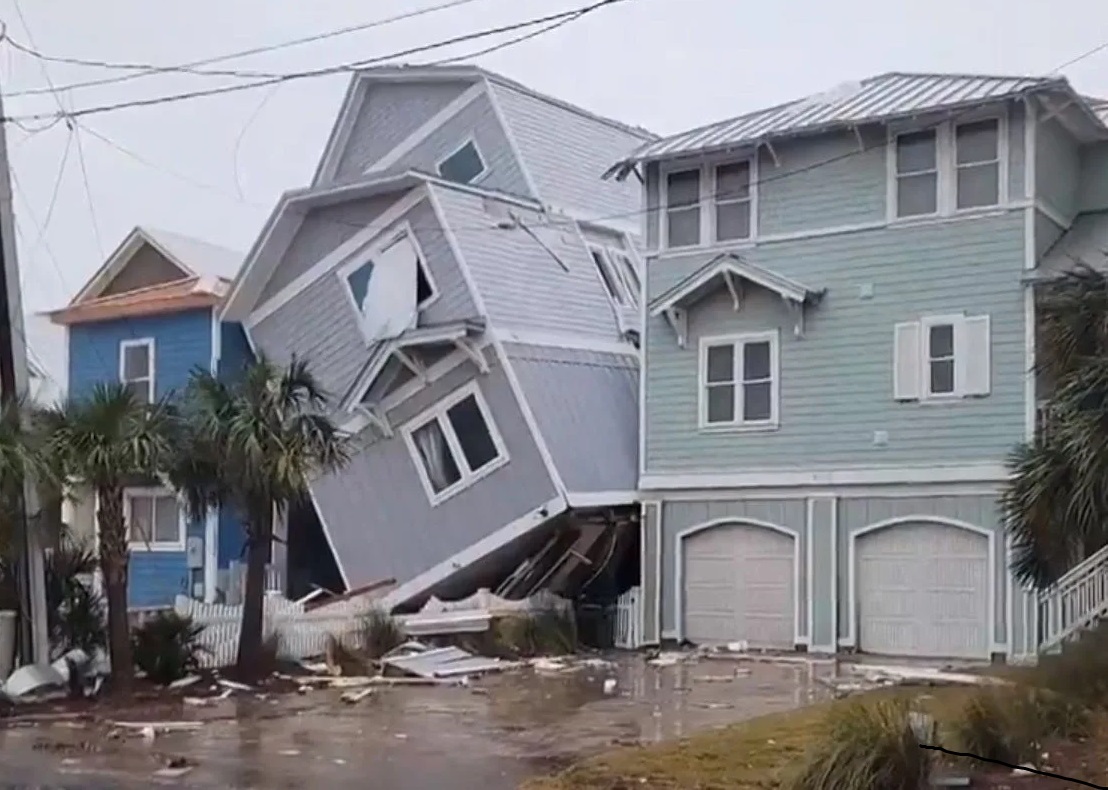 the stilts are inherently unstable and they either broke or the house was lifted off of them