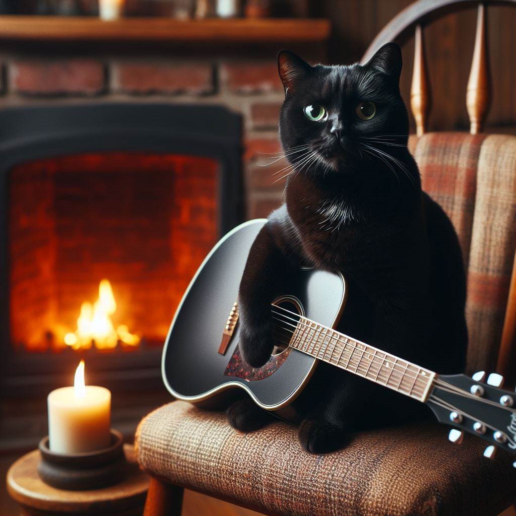 Has anyone else used 'Copilot', the Microsoft Edge AI program? I was just fooling with it again and decided to create a black cat holding a guitar sitting near a fireplace with candles nearby. Then I told Copilot to create a poem.