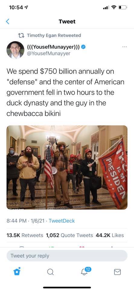 It's ironic that a week or so ago they were discussing the possibility of Iran mounting some sort of attack on Jan 6 to commemorate the killing of General Suliemani a year ago. Iran would choose (so the story goes) this day because it is theoretically a date very important to the US notion of democracy.