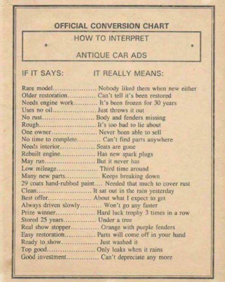This glossary might be helpful to anyone contemplating purchasing a "vintage" vehicle...