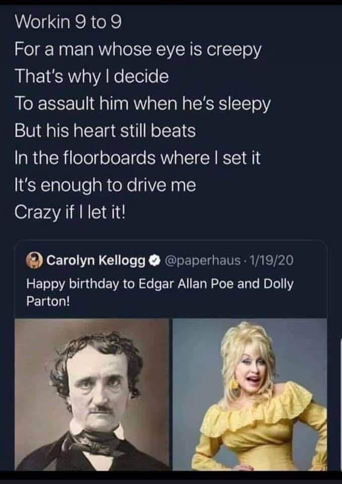 Re: Happy Birthday to Dolly Parton and Edgar Allen Poe