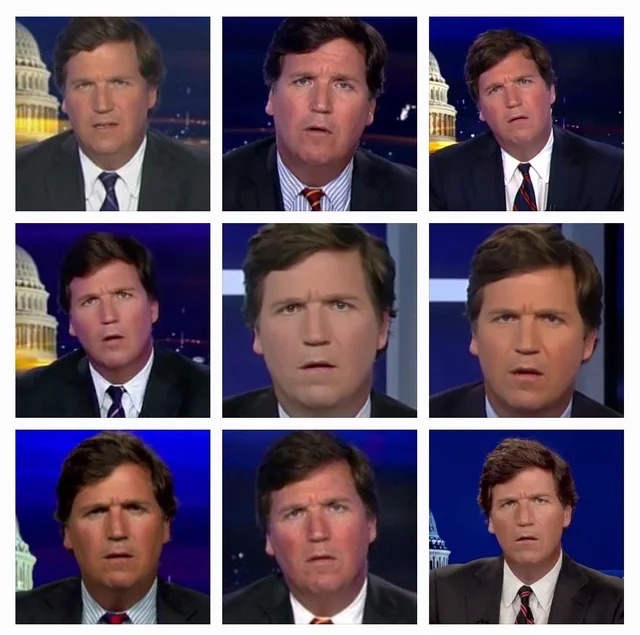 Yeah, Tucker Carlson has the worst facial expression of all talking heads. He looks like he doesn't understand a word anyone is saying. And he laughs like Amadeus!....